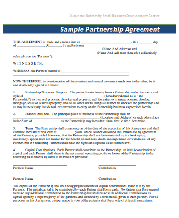 Exemples Samples Partnership Agreement Doc And Pdf Sample Contracts