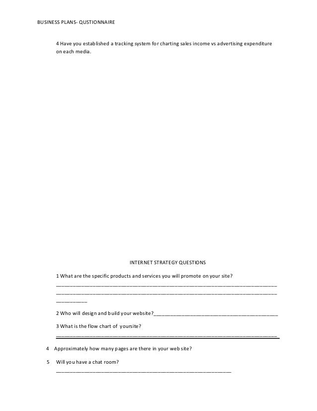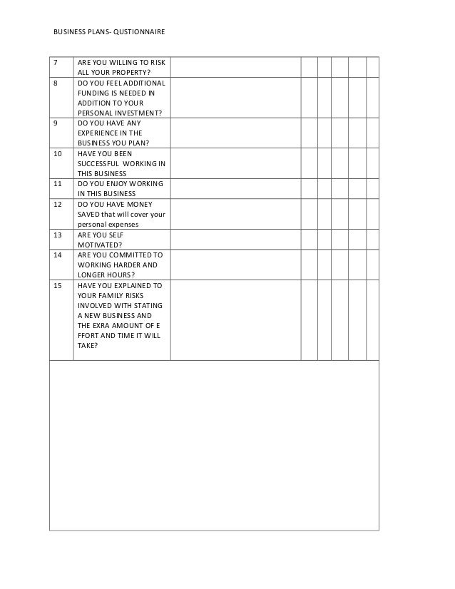 Business Plan Questionnaire Pdf Free Download