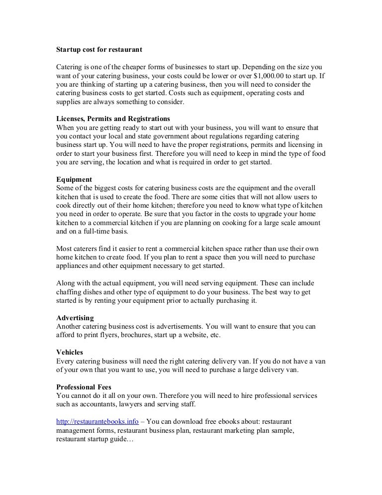 Startup Cost For Restaurant