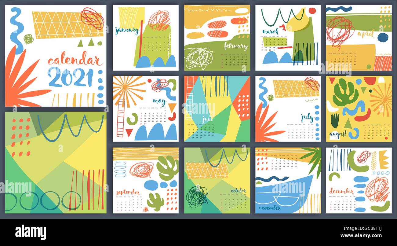 Hand Drawn Abstract Vector 2021 Calendar Template Design Stock Vector Image Art Alamy